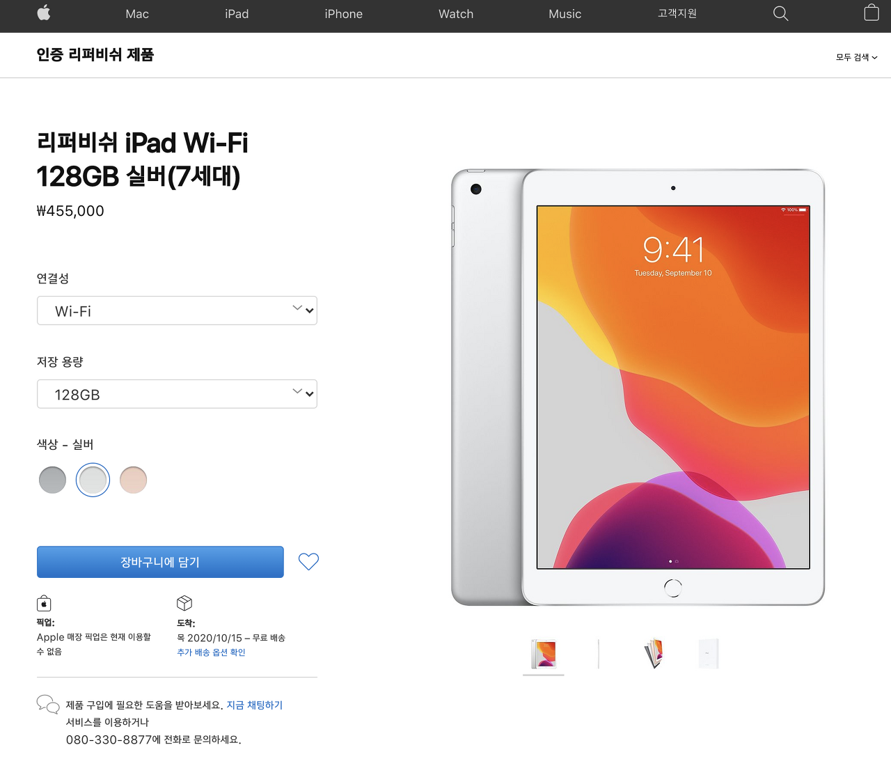 그러던 중 우연히 들어가 보게 된 애플 공식 홈페이지. 대체적으로 애플 공식 홈페이지는 교환, 환불에 대한 걱정이 없지만 온라인 마켓보다 비싼 가격으로 한 번도 제품을 구매해본 적이 없다. 다만 여기에 있는 애플 공식 리퍼비쉬 제품의 경우 자체 검수를 통해 거의 새 제품급을 구매할 수 있고 정말 우연히 들어가 봤는데.. 헉 고민을 한 번에 해결해줄 수 있는 가격을 보고야 말았고 처음으로 애플 홈페이지에서 결재를 하게 되었다. (역시 여기저기 기웃거리는 건 언젠가 빛을 보게 된다)