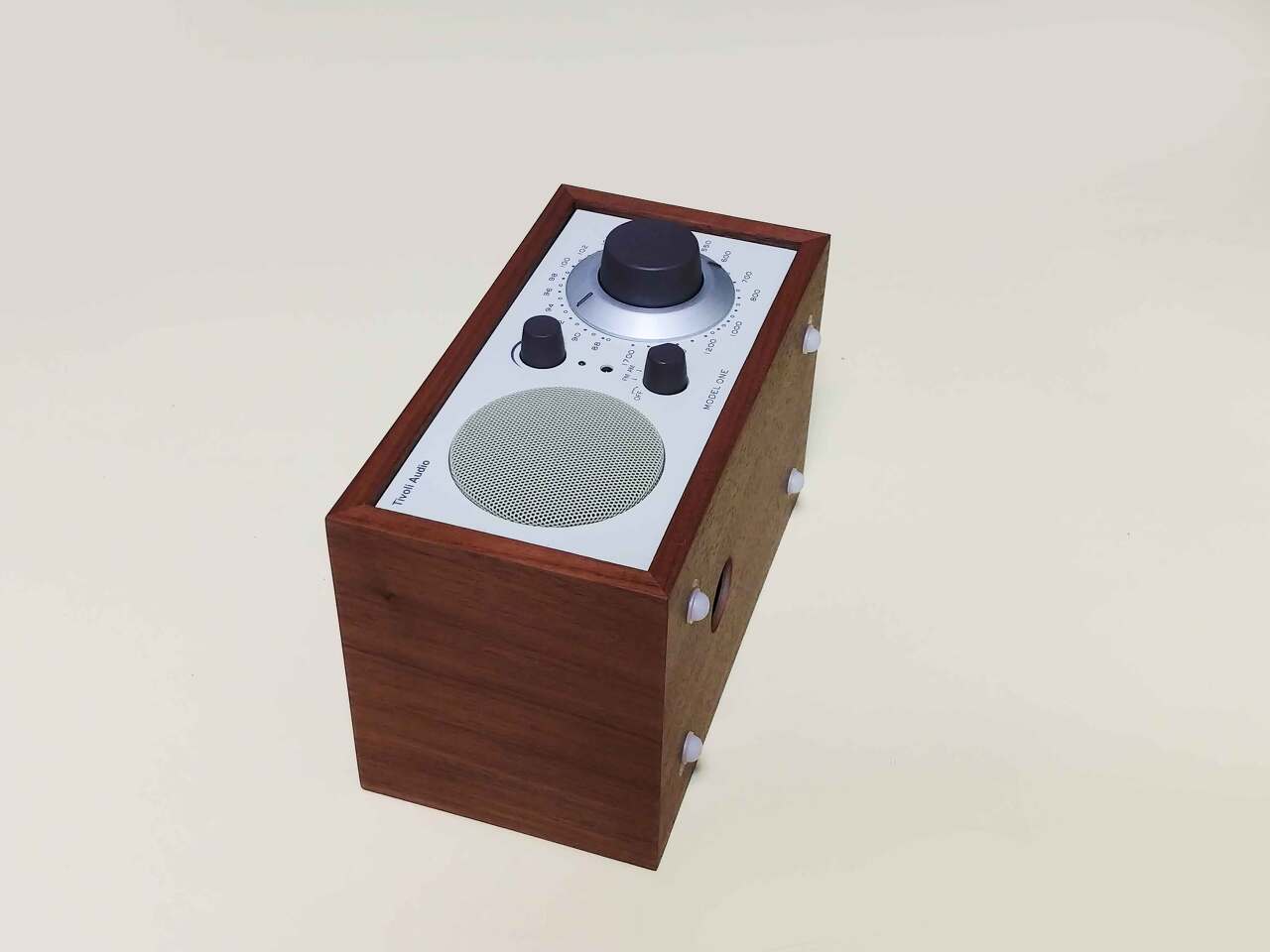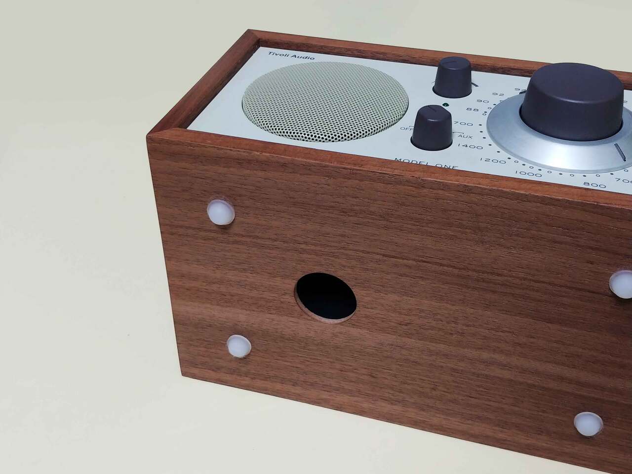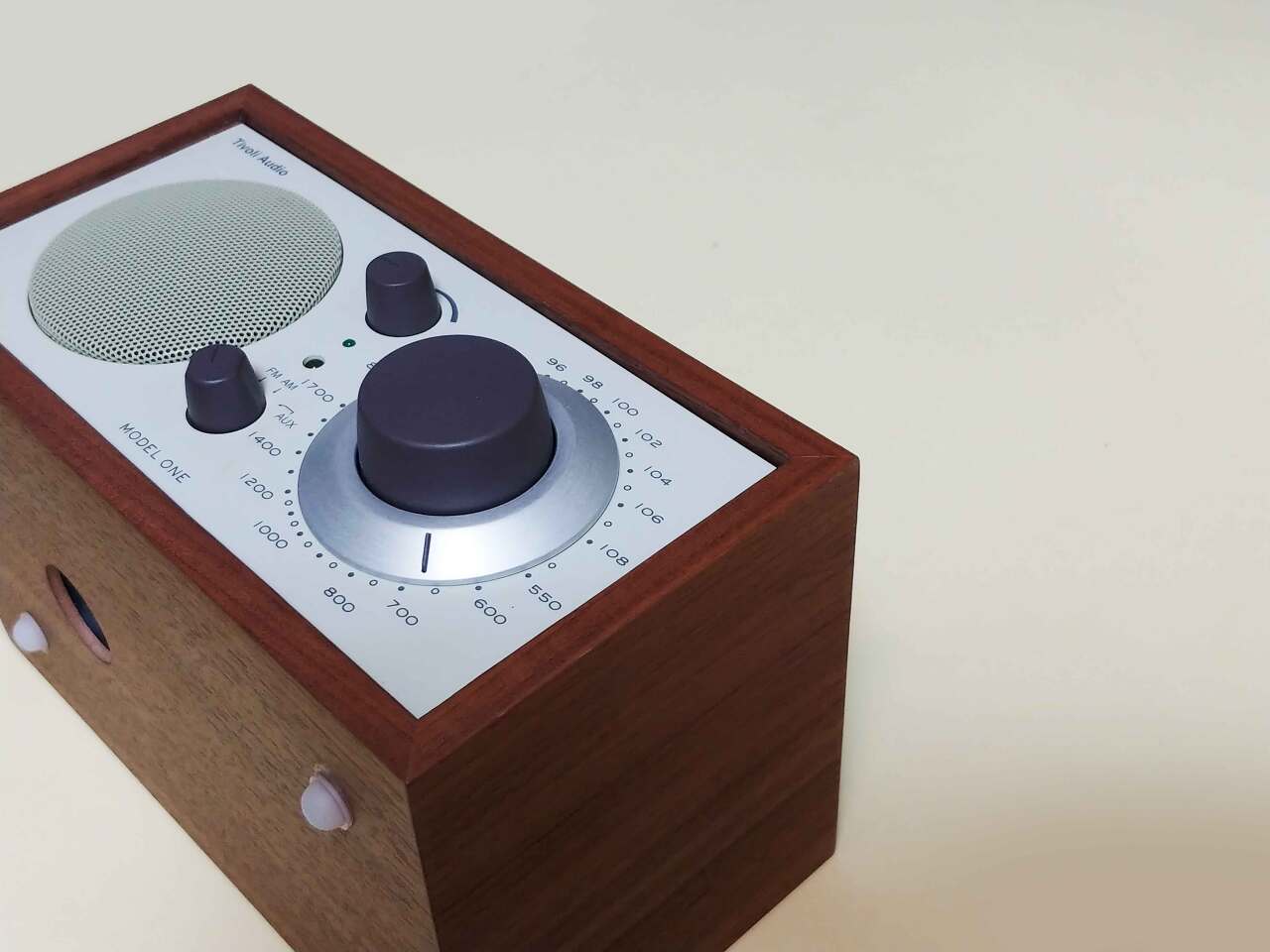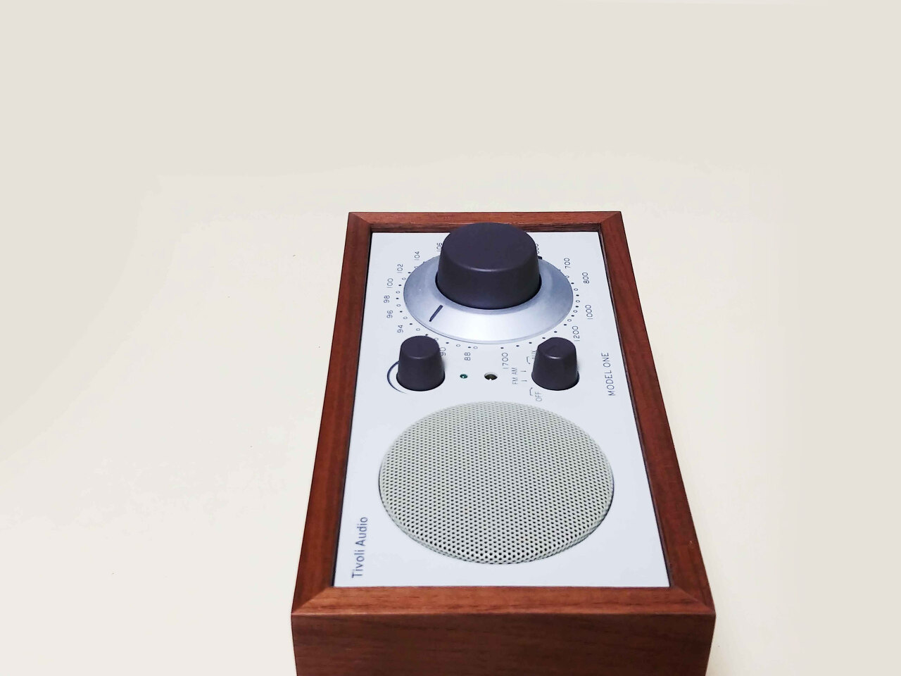 우리가 흔히 보아온 라디오와는 구성이 조금 다르지만 이 제품을 처음 보는 사람도 이게 라디오라는 것을 쉽게 알 만한 디자인이다. 주파수를 조절하는 인터페이스는 보통 숨겨져 있거나 작은 노브를 사용하는데 반해 이 제품은 스피커 그릴과 동일한 사이즈의 대형 노브로 라디오임을 강조하고 있다. 이렇게 클필요가 있겠나 하면서도 자연스럽게 스피커와 대칭으로 구성되어 티볼리 오디오의 가장 중요한 디자인 아이덴티티 역할을 한다.