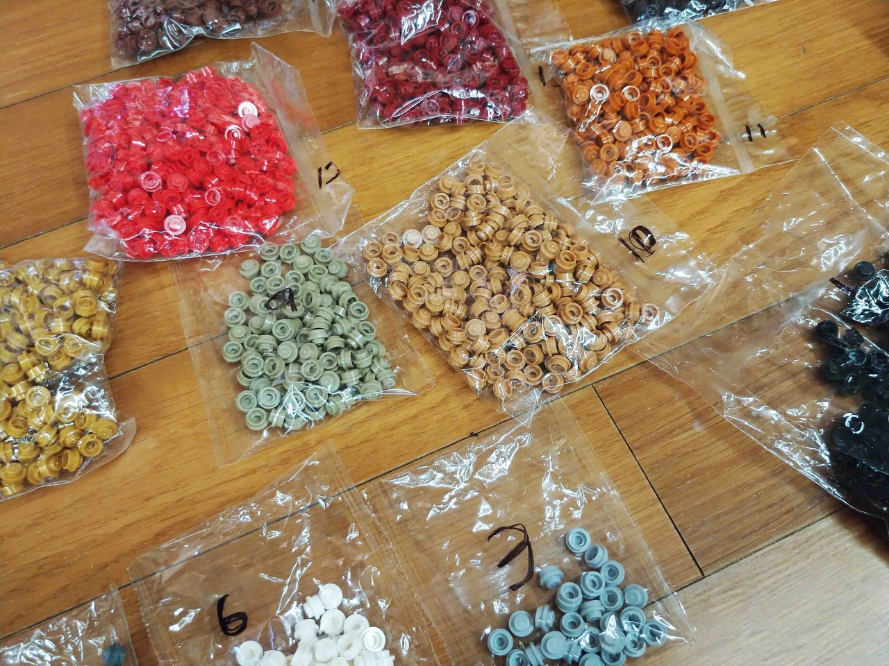 또 다른 문제는 총 15개의 컬러로 이루어진 저 동그란 부품이 담긴 봉지에 번호가 표시되어있지 않다는 점이었다. 결국 설명서를 보면서 각 봉지에 매직으로 번호를 적을 수밖에 없었고 (이렇게 하지 않고 조립을 하다가 비슷한 컬러끼리 섞이는 날에는 정말...) 각각이 담긴 봉지의 사이즈도 제각각이라서 조립하는 동안 관리하는 게 쉽지 않았다.