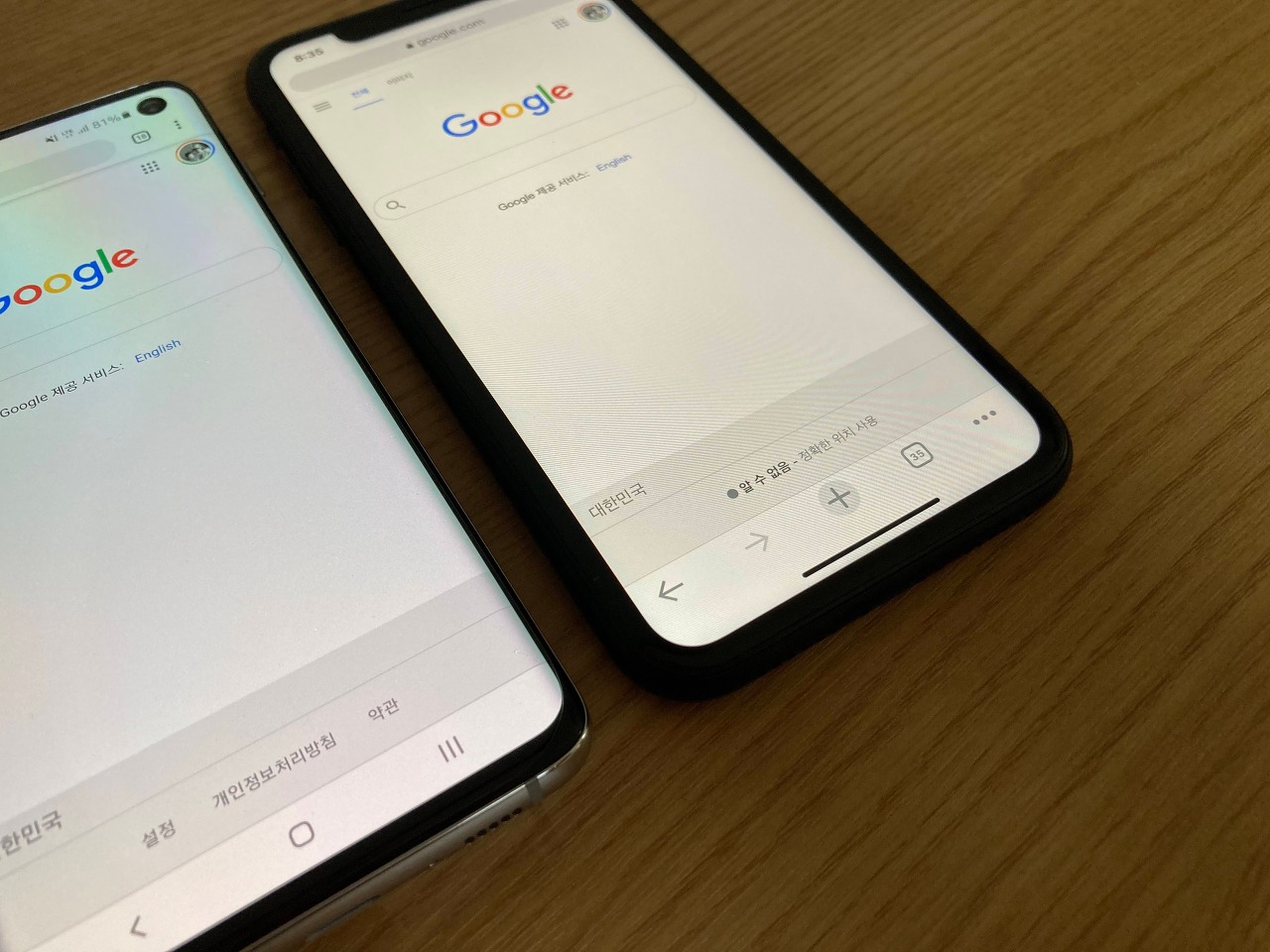 플래그십 안드로이드폰의 경우 미세하게 위아래 베젤의 두께가 다르거나 좌우의 경우 엣지디스플레이처럼 4방향의 베젤 두께가 일정하지 않은 경우가 많은 거에 비하면 확실히 균형이 주는 안정감은 아이폰의 디자인이 더 좋다고 생각한다.