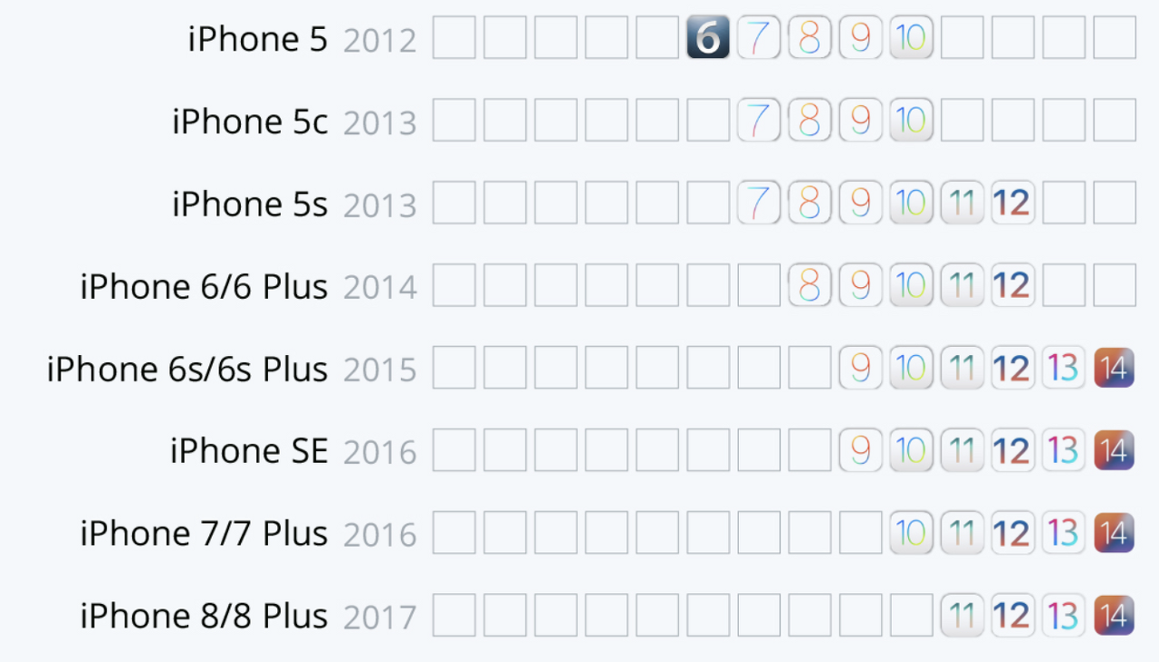 아이폰의 소프트웨어 지원도 한몫한다. 안드로이드 계열 대비 상당히 긴 기간 동안 소프트웨어 업그레이드를 지원하기에 중고 제품에서도 최신 제품의 소프트웨어 경험을 제공한다. 하드웨어, 소프트웨어 모두 중고제품에서 최신 제품의 향기를 느끼게 해주는 셈이다.