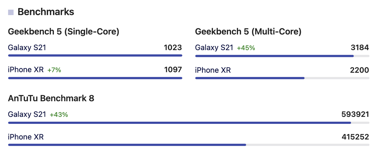 아이폰에서 사용하는 칩셋은 안드로이드 칩셋 대비 1~2년 정도 성능이 앞서있다. 여기서 앞서 있다는 말은 안드로이드 칩이 느리다는 의미는 아니다. 일반적인 사용자 입장에서는 둘 다 매우 좋은 성능을 제공한다. 중요한 건 1~2년 정도 앞서있는 수치상 성능이 1~2년 후에도 최신 제품의 경험을 제공한다는 점이다. 즉 중고 = 성능은 좀 뒤처지는 제품이라는 인식을 깨는 것이다.